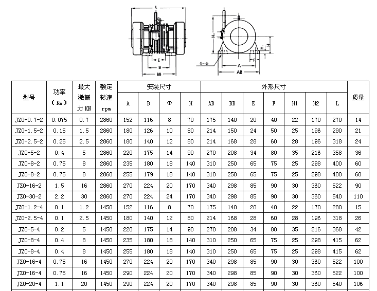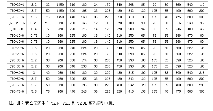 JZO振動電機參數(shù)